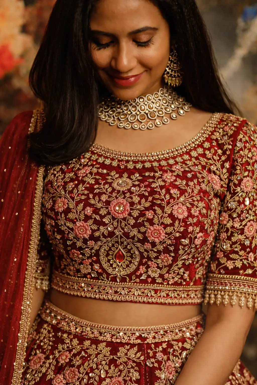 Bridal lehengas and blouses tailored to your measurements for a perfect wedding-day fit.